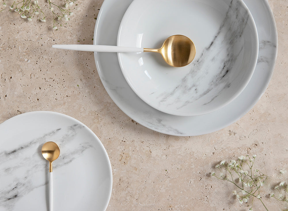 When we think of modern dishes for classic restaurants, we must have current pieces that have been designed and designed with a vocation for continuity. Dishes such as those in the Marble or Teak de Limoges collection are a perfect choice for those who want to dress their tables with something current without risking too much and knowing that they are investing a tableware for a long time.