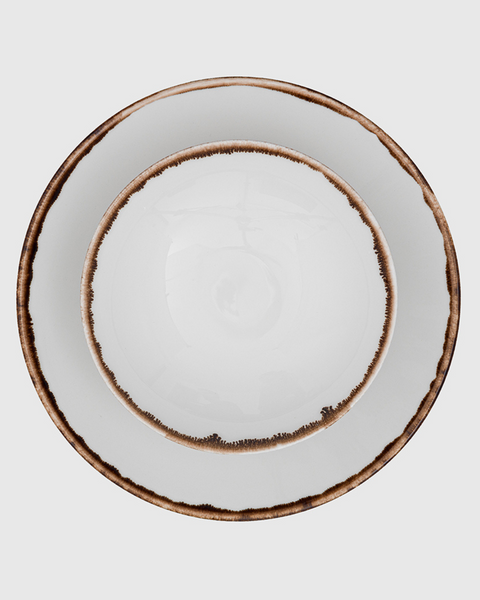 Natural Brown is a collection of English tableware made of fine vitrified stoneware inspired by the British countryside. Its irregular hand-painted brown edge recalls the gastronomic culture of the Cotswolds, where merchants and financiers from the English capital came every weekend to rest and enjoy the privileged gastronomy of the area. Original proposal to live it every day.