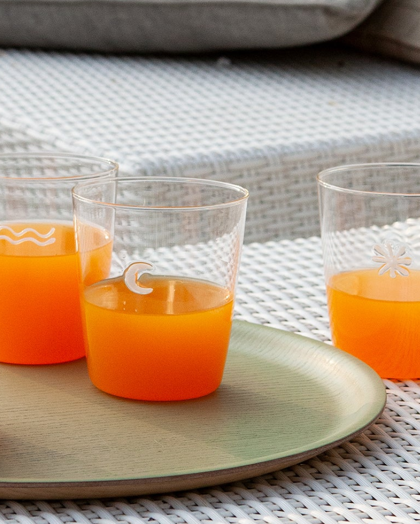 The Zafferano 4 Stagioni collection is inspired by the colors of the seasons. Its tones evoke the freshness of spring, the energy of summer, the warmth of autumn, and the elegance of winter. These Italian designer glasses are versatile and functional: perfect as water glasses, cocktail glasses, or to enhance a festive table setting.