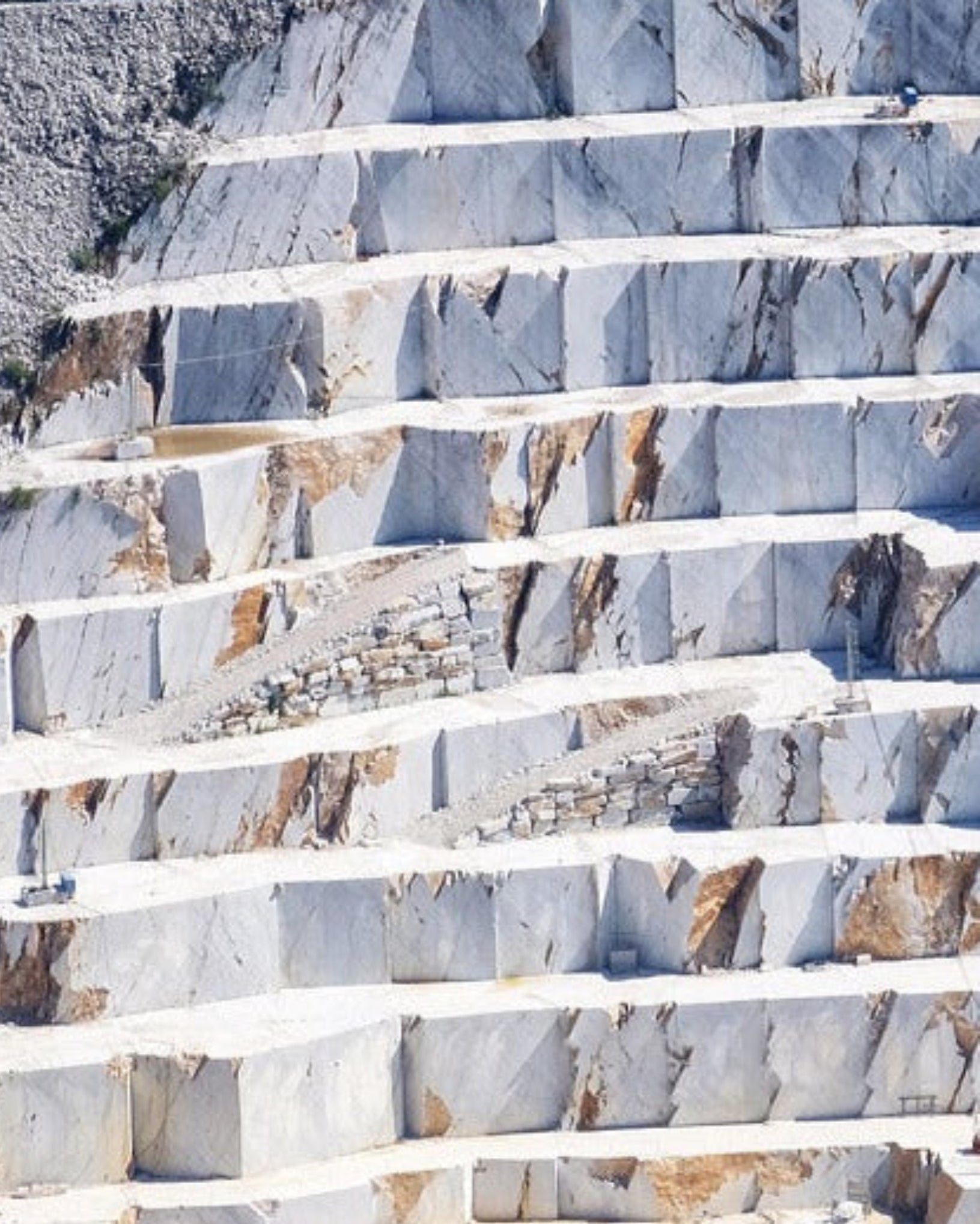 Carrara is een van de mooiste en meest gewaardeerde marmersoorten. Deze collectie is geïnspireerd op dit kostbare mineraal, gewonnen in de Apuaanse Alpen in het noorden van Toscane, Italië, en favoriet bij beeldhouwers als Michelangelo, die persoonlijk de stukken selecteerde om zijn werken te polijsten.