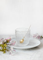 Set of 6 glasses and mug from the Textures collection. Remember that Textures is a collection of designer glasses with six types of embossed textures. Inspired by the geometric shapes revolution of the sixties, it is a unique and special collection that will make a difference on your table.